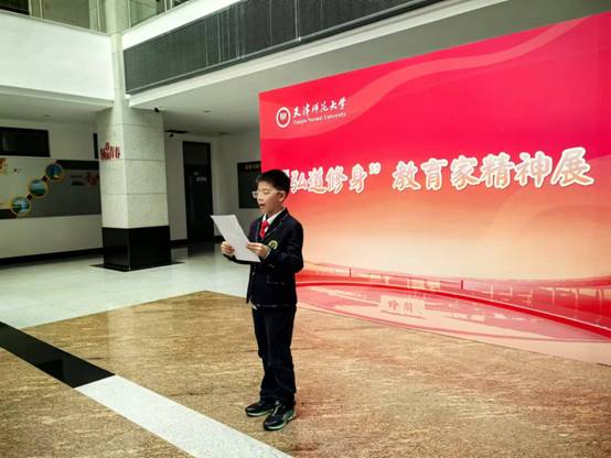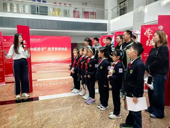 10月25日,天津市逸阳梅江湾小学三年级12班的员工代表在班主任潘奕彤老师和家长的带领下来到永利yl23411,参观永利yl23411主办的“弘道修身”教育家精神展。
