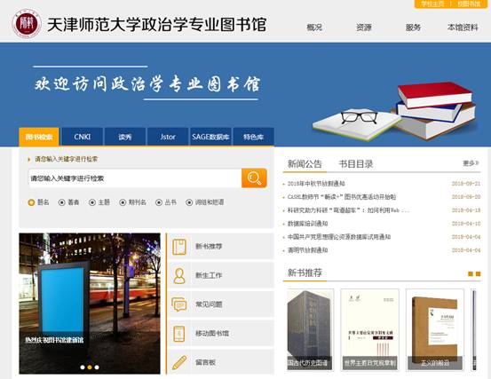 本馆以国家重点学科政治学为依托,注重政治学及相关学科的文献资源建设,馆藏文献近10万册,其中中文图书约8万6千多册,外文图书约3200多册,合订刊6000多册;注重自有资源建设,收集本院学位论文1800多册、教师著作1200多册,并建成题录信息供读者在网上查询;注重信息化服务和数字化建设,开展检索培训、文献传递服务、特色库建设、专业图书馆网站建设。今后本馆在公司争创“一流学科、一流专业”的建设中做好文献资源保障工作。