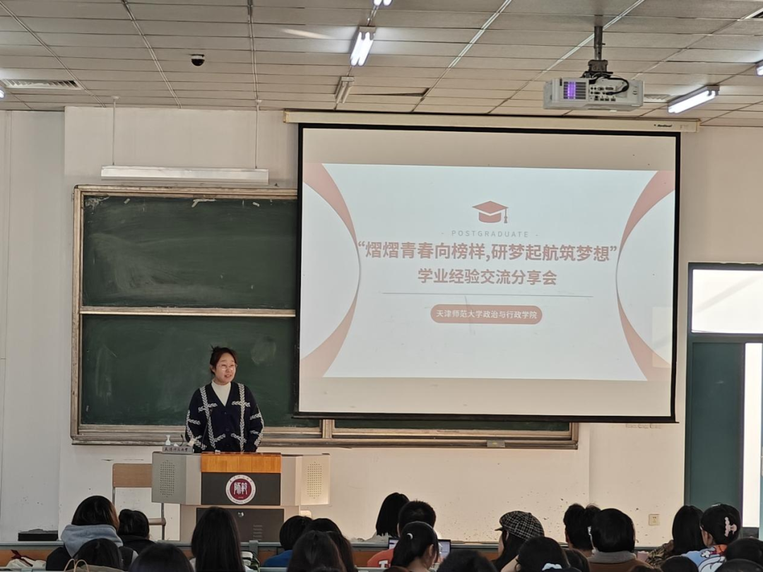 交流会后半场由三位考研成功的学长学姐结合自身考研经历为参会同学进行经验分享、解惑释疑。考研至本校中共党史专业的政行1901班赵晨羽主要就考研备考学习方法做了详细介绍。她总结了各种答题模板和做题技巧,毫无保留地分享给在座的学弟学妹,最后她还向学弟学妹们送上了衷心的祝福——“日拱一卒,功不唐捐”。