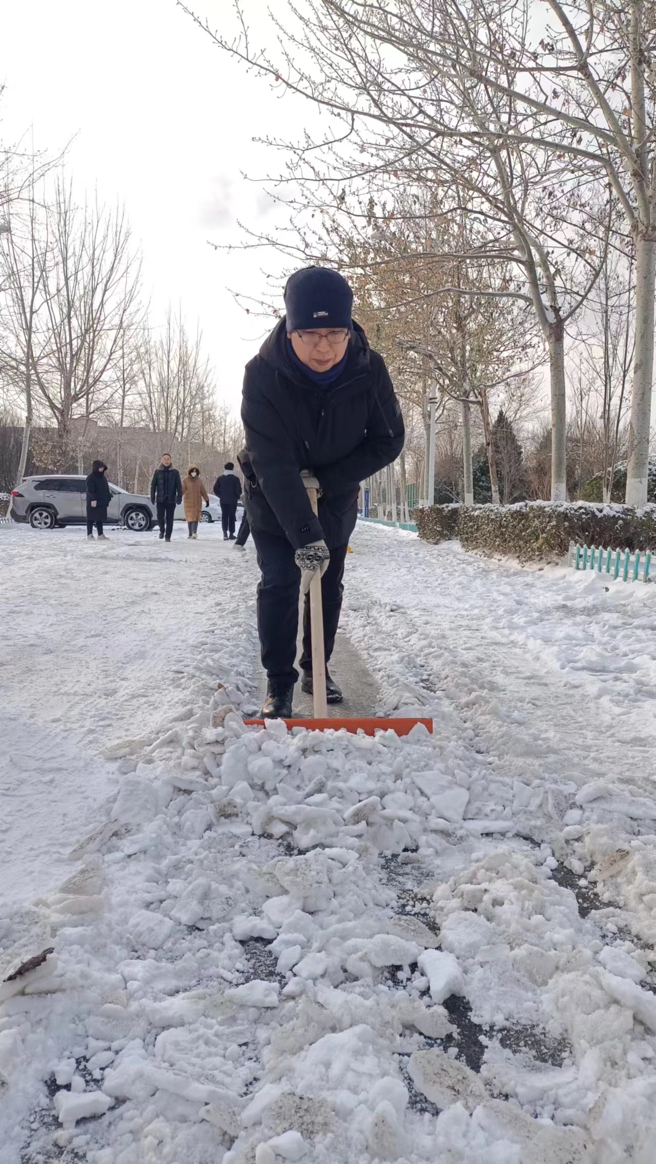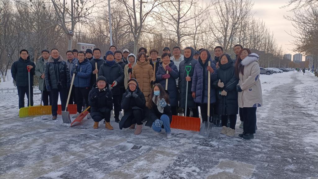 12月15日清晨,院领导班子带头,广大师生积极响应,热火朝天的铲雪除冰场面为寒冷的冬季增添了另一种美丽。由于过往车辆的来回碾压,冰雪紧紧附着于地面上,加剧了清理的难度,但这丝毫没有影响师生们的热情和工作效率,他们利用铁锹,雪铲等工具,相互配合,经过几个小时的奋战,网格区道路又恢复了往日的清爽。