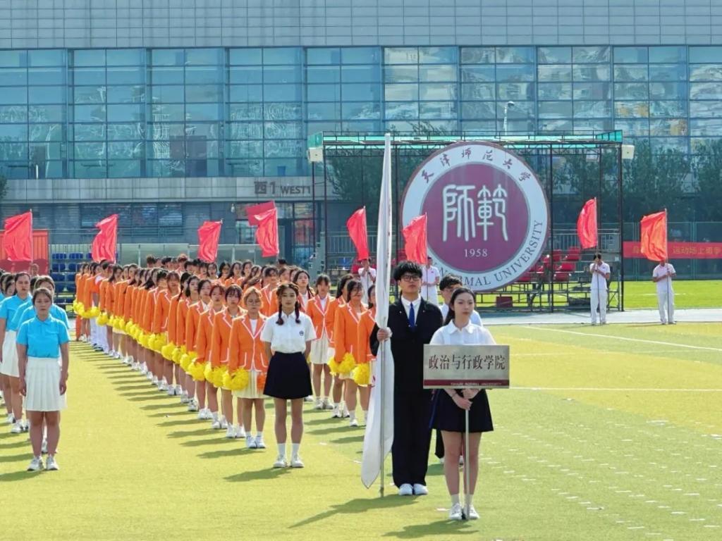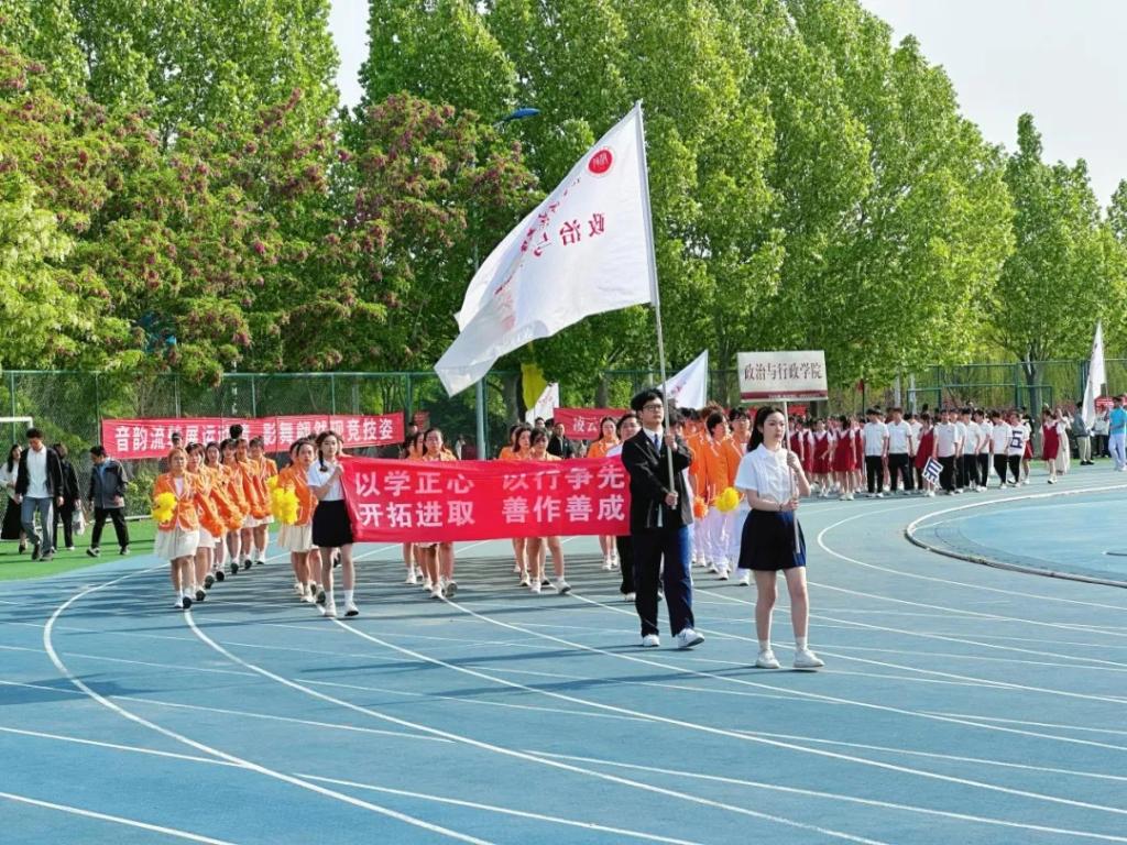 快瞧!政行方队向我们缓缓走来啦!看,他们英姿飒爽,青春飞扬;听,他们步履铿锵,口号响亮。“以学正心,以行争先,开拓进取,善作善成”,选手们手握花球,目光如炬,步伐坚定,身姿矫捷,带着政行学子的蓬勃生机昂首阔步,展少年凌云万丈。